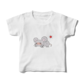 キッズTシャツ - 100cm - 正面暑さで溶けている干支の子(ねずみ)のTシャツです。 干支関係なくねずみが好きな方にも着ていただけるかと思います。 他サイズも販売しておりますので、親子お揃いで着ることもできます。 この商品はpixivFACTORYで作られた商品です。サンプル画像は完成イメージのため、実物と異なる場合があります。