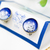 ちいさなまるいイヤリング 青い雪 ブルー×ホワイトパール 蝶バネ式 金具の色が選べます