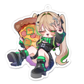 ぽんちゅろまっくす☆活動2周年記念アクキー❣ ファンマのピザがおいしそうしゅぎる💚💚 このイラストはDOOM様@doom_yorusenに描いていただきました この商品はpixivFACTORYで作られた商品です。サンプル画像は完成イメージのため、実物と異なる場合があります。