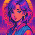 メタリックピクセル・サンセットガール – クローム×ネオン 未来的80sイラスト