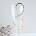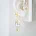 ~ 妖精の光の軌跡を耳元に閉じ込めたイヤーフック ~ 繊細なチェーンに、小さな雫型のガラスビーズを連ねました。 中央にはオーロラにきらめくスワロフスキー、前面には透かしパーツを添えて、耳元に軽やかなアクセントを演出します。 チェーンの星から繋がるガラスビーズやスワロフスキーが、光を受けるたびに繊細な煌めきを生み出します。 自然光と蛍光灯と、光源によって色合いが変わります。 耳元でさりげなく異なる表情を楽しめます。 揺れるたびに描かれるきらめきは、妖精の舞い跡を思わせるような繊細な軌跡。 日常の中で、そっと光を纏うひとときを届けてくれます。 ------------------------ ★お好みのカラーをお選びください ・イエロー(黄) ・グリーン(緑) ・ブルー(紺) ・パープル(紫) ※パープル(紫)は、蛍光灯の下では淡い水色に変わります。 ------------------------ ★高級クリスタル使用 円形のオーロラクリスタルは、スワロフスキー・クリスタルを使用しています。オーロラコーティングされていて、小さいながらもダイヤのようにキラキラと輝きます。 ---------------------------------- ★Radiantのイヤーフックのポイント★ ✤落ちない ✤痛くない ✤サッと掛けられる ✤耳に合わせて調節可能 ✤ピアスと重ね付けもできる ✤眼鏡をしながらでも装着可能 ------------------------ ◆サイズ・・・フリー、全長約14cm ◆素材・・・クリスタルガラス(Swarovski社製)、ガラスパーツ、メタルパーツ ※ご注文いただいてからの制作となります。 ※どちらの耳にも装着可能です。 ※イヤーフック部分はメッキ(国内製造の安心素材)です。