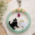 ꧁꒰ঌ˙˚ご覧いただきありがとうございます˚˙໒꒱꧂ 同じものは作れません。一期一会の出会いを大切に レジンで作った一点物のキーホルダーです。薄緑の輪の中に黒猫と白猫のペアがいます。鈴もついてます。 直径約5cm 厚さ約0.5cm 重さ11g ⋆˳˙ ୨୧…………………………………୨୧˙˳⋆ 光の当たり具合等で色味が違って見える場合もあります。 丁寧に作っていますが、気泡や小さな傷、小さな歪み等ある場合があります。ご理解の上でご購入ください。 購入者さま都合での返品、返金は対応致しかねます。定形外郵便での発送となります。なるべく早く発送できるようにしますが、発送まで数日いただく場合もあります。 ※製作者は猫に触れる機会があります(飼っているわけではありません)。重度の猫アレルギー等気になる方はご注意ください。