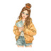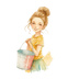 水彩タッチの ナチュラルな女の子をモチーフ、カフェ風クリップアート38点セット