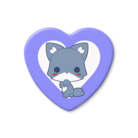 ハート缶バッジ - 57 × 52.5mmラブデリフレンズの仲間、おおかみのハート缶バッジです。 肉より野菜や木の実を好んで食べる、思いやりがあって繊細な性格の男の子。