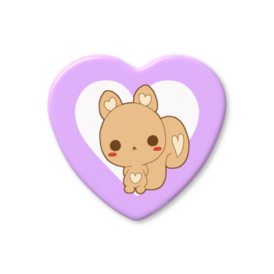ハート缶バッジ - 57 × 52.5mmラブデリフレンズの仲間、りすのハート缶バッジです。 欲張りでツンデレな女の子。