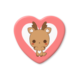 ハート缶バッジ - 57 × 52.5mmラブデリフレンズの仲間、しかのハート缶バッジです。 物知りで人懐っこく、頼りがいのある性格の男の子。