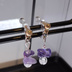「誠実」、「高貴」、「心の平和」を石言葉に持つアメジストに、他の石のサポートをしてくれる効果もあるパワーストーン、クラック水晶を合わせた小さめの樹脂イヤリングです。