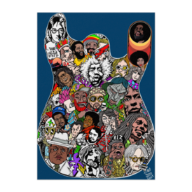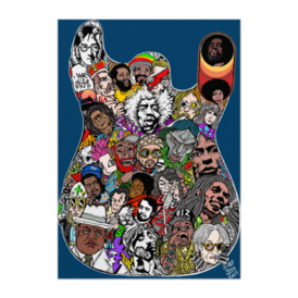 この商品はpixivFACTORYで作られた商品です。サンプル画像は完成イメージのため、実物と異なる場合があります。 画家ゴトウヒデオの代表作 死んだスーパースター絵画は実際のギター製造時の廃材の木枠を額にして製造しています。 こちらではイラストをデジタル化したポスター販売をいたします。 2025年7月までに亡くなっているアーティスト ミュージシャンを絵の中に描き込んでいます。ジミヘンを筆頭に各ジャンルの偉人を描いています。