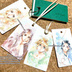 栞として持ち歩ける原画を作りました🔖 こちらの原画栞🔖はマルマンさんのヴィフアール水彩紙の単語カードを使用しております。 242g/㎡と官製はがきと遜色ない紙の厚さもあります。(個人的には官製はがきより厚手の紙の感触です。) 着色は固形水彩です。 インクがてかっているところはメタリックを使用しています。 固形水彩のメタリックは粒子がとても細かいためギラギラしておらず奥ゆかしい印象です。 お手持ちの御本や手帳に挟んで一緒に連れ出してあげてください ( ◜︎◡︎◝︎ ) 栞なのでリボンをつけた状態でお届けしますが、御本や手帳の紙を痛めてしまうよという方は外して下さいね。 現在、企画展に出品する絵に付けるキャプションは このvifart単語カードと固形水彩を使って作っておりまして。 いつも綺麗だなーもう少しよく見てもらえるようにならないかなぁと思っていたところ 最近久しぶりに本を買ったので、「あ、栞つくろ!」となり制作してみました😊 お試しいただけるお値付け設定になっていれば…。 +------------------ [使用画材] マルマン vifart水彩紙中目(単語カード型) サクラクレパス ピグマ0.03セピア サクラクレパス 固形水彩 タチカワ Pure White 東山 漫画ライナー(カッパー) など +------- 画像にはAI学習対策フィルターを使用しているため 原画の色味と若干の差異が発生しています。