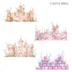 横長のお城のイラスト素材|プリンセス王国・水彩クリップアート