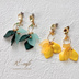 いらっしゃいませ ご来店ありがとうございます☕️ 9/21のイベントで完売したピアスの再販です。 推し色の花びらが揺れるデザインとなっています。 ダークな装いが増える秋冬だからこそ、耳元に華やぎをプラス🟢🟡 ピアスの金具はチタンポストです。 (比較的アレルギーが出にくい素材ではありますが、すべての方にアレルギーが起きないわけではありません。ご自身の体質に合わせてご検討ください。) ピアスホールを開けていない方向けに 樹脂タイプのノンホールピアスへの変更も承ります。 ご購入後にメッセージからご希望をお伝えいただければと思います。 (こちらからの確認メッセージにご返信がない場合はピアスでご用意させていただきます) 【仕様】 ・金具:ゴールドカラー メルティラウンドデザインピアス(チタンポスト) ・パーツ:花びら型アクリルパーツ(画像参照)、ボタンカットガラスビーズ、貴和クリスタル(パーツ)、メタル変形デザインフープ、メタルビーズ ※ご注文をいただいてから心を込めて作成します。通常、ご注文から5日以内に発送致します。 ※こちらの商品はハンドメイドです。 ※商品画像はディスプレイの影響などにより、色味などが実物と若干異なる場合があります。ご了承ください。 ※金属のパーツはメッキ加工です。金属アレルギーやメッキ加工した製品がお肌に合わない方は、使用の際に注意していただくか、ご使用をご遠慮ください。また、ご使用の環境によりましては退色する場合もありますので、その点ご了承ください。 ※こちらの商品は「あんしんBOOTHパック」で発送いたします。購入者様が個人情報を明かすことなくお取引いただけます。 ※緩衝材に包んでの簡易包装となります。 ※お取引のやり取りはBOOTHのメッセージから差し上げますので、ご購入後はぜひそちらをご覧ください。