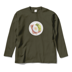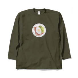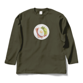 朝食やブランチにあると嬉しいメニュー♪ ベーコンエッグサラダのプレートが目を惹くロングスリーブTシャツです。 以下から、お好きなカラーをお選びください。 【カラー】 ・白(ホワイト) ・灰(杢グレー) ・黒(ブラック) ・紺(ネイビー) ・アーミーグリーン この商品はpixivFACTORYで作られた商品です。サンプル画像は完成イメージのため、実物と異なる場合があります。