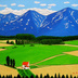 ★十勝連峰と赤い屋根の家・肉筆油彩画・F6キャンバス