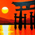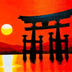 ★厳島神社鳥居・肉筆油彩画・F6キャンバス