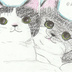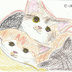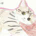 ポストカードサイズのマーメイド紙やケント紙に鉛筆、色鉛筆、クーピー、水彩色鉛筆、ボールペン等を使用して我が家や義実家、実家の猫達を描いたオリジナルポストカードの原画をケント紙にコピーしたセットです。