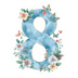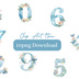 淡い空色に、可憐な花々をまとった数字のクリップアートセット