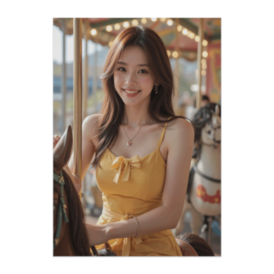 この商品はpixivFACTORYで作られた商品です。サンプル画像は完成イメージのため、実物と異なる場合があります。 回る木馬の上で、明るく笑う女性。夏の光に包まれたメリーゴーランドが、心の中のトキメキを呼び覚まします。幸福感あふれる一枚です。
