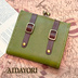 僕はお気に入りの財布片手に、旅の準備をする。 必要なものは最低限でいいな。 あとは現地で気の向くまま買い物をしよう。 -- 素材:イタリアンレザー牛革(エルバマット)、麻糸、デザインがま口、金古美金具 サイズ:本体 約 縦10cm × 横9.6cm × 幅3cm 小銭入れ:がま口 カードポケット:内2つ、外1つ -- イタリアンレザーの二つ折り財布です。 小銭入れはがま口です。二つ折りの開閉はマグネットホックです。 薄さ、スマートさを優先したデザインで、容量は多くありません。 セカンド財布や、普段はスマホ決済を利用する方の補助財布などのシーンに合います。 二つのベルト装飾がレトロなお洒落を演出します。 本体の色は渋めのライムグリーン。金具はアンティークゴールドです。 — ハンドメイド品ですので少々の色の濃淡、個体差などがあります。 気になる方はトラブル防止の為、注文をお控えください。 また、金属、革アレルギーの方はご使用になれません。ご注意ください。 厚みが3㎝を越えるため、発送方法はレターパックプラスになります。