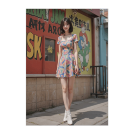 この商品はpixivFACTORYで作られた商品です。サンプル画像は完成イメージのため、実物と異なる場合があります。 1960年代のポップアートの世界から抜け出したような、明るく元気なモッズガール。 カラフルなミニドレスと白いブーツが太陽の光に映える、レトロで楽しいポスター作品です。