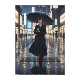 この商品はpixivFACTORYで作られた商品です。サンプル画像は完成イメージのため、実物と異なる場合があります。 夜の街に灯る光の中、静かに傘をさす女性。 濡れた路面に街灯が映り込み、雨音まで聞こえてきそうな一枚。 穏やかでノスタルジックなアニメポスターです。