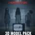 VRChatのワールドに設置できるホラーモデルです。 ローポリ版もそれぞれ入っており、3種*2個ずつで合計6個のお化け風の3Dモデルが中に入ってます。 詳細は画像をご覧ください。 基本的にはFBXポン置きでいけます。 ホラーワールドのモデル等にお使いください。 特にモデルにアニメーションとかRigがあるわけではありません。 頂点数 髪が長い女性のモデル/125159 正面を向いているモデル/427748 横を向いているモデル/241668 ※ポリゴン数が多いので、Lowクオリティでの設置をオススメします。 ローポリ版 髪が長い女性のモデル/12355 正面を向いてるモデル/8504 横を向いているモデル/2408