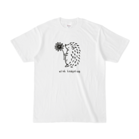 Tシャツ - XL - 白ノギクを手に、幸せを感じるハリネズミくん!
