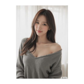 ポスター - B2この商品はpixivFACTORYで作られた商品です。サンプル画像は完成イメージのため、実物と異なる場合があります。 白いカーテン越しの柔らかな逆光に包まれた女性。グレイニットの穏やかな質感と自然な笑顔が調和し、落ち着いた温もりを感じさせます。日常の中にある美しさを丁寧に切り取ったリアルポートレート作品。