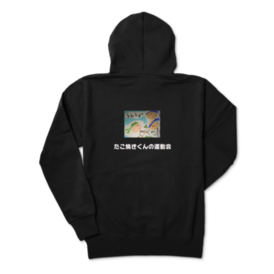 たこ焼きくんの運動会ジップパーカー (ブラック、背面デザイン)