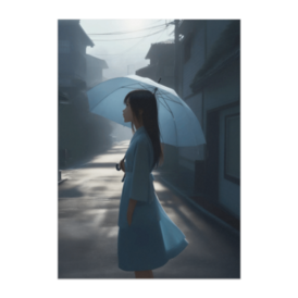 ポスター - B2この商品はpixivFACTORYで作られた商品です。サンプル画像は完成イメージのため、実物と異なる場合があります。 澄んだ朝の空気の中、青い傘を差して佇む女性。 柔らかな日差しと静かな住宅街の雰囲気が、爽やかな余韻を広げます。 穏やかな朝の一瞬を切り取った、清らかなポスター作品です。