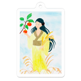 アクリルキーホルダー(コーティング) - 50 x 50 (mm)この商品はpixivFACTORYで作られた商品です。サンプル画像は完成イメージのため、実物と異なる場合があります。 2025年吉田蛍テーマ ジャポニズム 11月 黄金の実り〜女神の祝福〜 秋の実り 柿と稲穂🌾 を描いた作品 アクリルキーホルダー