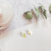 瑞々しい若葉と、ひそやかな金のきらめき。 耳元に、幸運の羽根がとまったようなピアスです。 白×ゴールドのアクセサリーはフォーマル寄りになりがちですが、 そこに柔らかな黄緑を加えることで、 日常にも馴染む軽やかな印象を目指しました。 一方には淡いグリーンを閉じ込め、もう一方には ホワイトにゴールドのラメを散らして、 鶴丸国永の遊び心と品の良さをひとしずくに。 さりげなく光るゴールドが、顔まわりをぱっと明るく見せてくれます。 【選べる金具】 ※ご希望により、ノンホールピアス(+100円)に変更可能です。 【商品情報】 素材:レジン、樹脂ピアスポスト サイズ:約10mm×7mm 重量:両耳で約1g ※ハンドメイドのため、わずかな個体差があります。