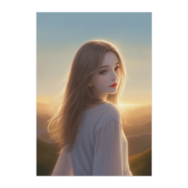 ポスター - B2この商品はpixivFACTORYで作られた商品です。サンプル画像は完成イメージのため、実物と異なる場合があります。 広がる山々の向こうに夕陽が沈む瞬間、柔らかい風に髪が揺れる少女を描いた作品。静寂と温もりが溶け合うような時間を切り取った、美しく幻想的なポスターです。自然と光に包まれる優しい世界観をお楽しみください。