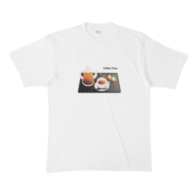 Tシャツ 白色 XL――そろそろ、休憩はいかが? ホットコーヒーに、砂糖とミルクはお好みでどうぞ♪ トレイに置かれたコーヒーセットが、気分転換を促してくれるオリジナルTシャツです。 この商品はpixivFACTORYで作られた商品です。サンプル画像は完成イメージのため、実物と異なる場合があります。