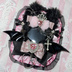B8・縦型 硬質ケースデコ 黒 ピンク 猫耳 コウモリ