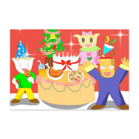 ギョーザマン達のクリスマスパーティーイラストポストカード