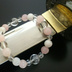 石田三成の『大一大万大吉』と大谷吉継の『対い蝶』の彫刻が入った水晶と天然石のブレスレットです。 生涯変わらぬ絆で結ばれた武将の力が、貴方と大切な方を固く繋げるよう石のパワーが増幅しますように。 使用している石は水晶、ローズクォーツ、ムーンストーンです。 【素材】 水晶…6、8、10ミリ ローズクォーツ…8ミリ ムーンストーン…8ミリ 【効果】 水晶…運気アップ、潜在能力を引き出す ローズクォーツ…恋を呼ぶ、愛を育む、慈愛 ムーンストーン…恋人のお守り・女性の魅力上昇 内径14センチ程度 ※注意 ブレスレットはオペロンという伸びるテグスを使用しています。 それなりの強度はありますがあまり強く引っ張り過ぎると切れたり伸びたりする場合がありますのでご注意ください。 使用状況によりゴムの劣化が早まる場合があります。汗や水に濡れたままにしたり、長い間使用していない時などはゴムの劣化が起きていないか確認してください。 劣化を放置していると使用中にゴムが切れてしまう場合があります。 ご利用のモニター環境により実物と若干色あい等が異なる場合があります。