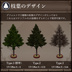 Puchikun_TreePack.unitypackage ☆使用三角面数/パラメーター数/ビット数 ポリゴン数: 1本:△1200~6500(形状により変動) パラメーター数:7 使用ビット数:14