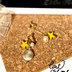 メタリックゴールドとイエローのウッドビーズを用いたアシンメトリーイヤリングです イエローのウッドビーズとパールビーズを用いることで、メタリックゴールドのかっこよさを引き立たせつつ、可愛らしさを演出しました 素朴なウッドビーズとメタリックなゴールドパーツを掛け合わせた唯一無二のイヤリングです ◯こちらはハンドメイド作品です 素人が趣味で作っているものなので、既製品の様な完成度をご希望の方は購入をお控え下さい ◯モニター環境によって実際のお色と異なる場合がございます ◯丁寧にお作りしておりますが繊細な物なのでお取り扱いには十分ご注意下さい ◯一部、メッキのパーツを使用しておりますので、長期間の使用で、メッキの剥がれが見られることがあります ◯金属アレルギー非対応のため、金属アレルギーの方はご購入をお控えください ◯その他ご質問等ございましたらお気軽にお声掛けいただけますと幸いです
