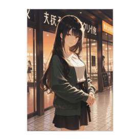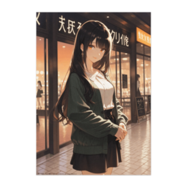 ポスター - B2この商品はpixivFACTORYで作られた商品です。サンプル画像は完成イメージのため、実物と異なる場合があります。 夕暮れの商店街を歩く、落ち着いたオリーブグリーンのカーディガンが似合う女の子。 冬の灯りに照らされた柔らかな雰囲気が魅力のイラスト風ポスターです。 シンプルで上品な色合いが、お部屋のアクセントとしても最適です。