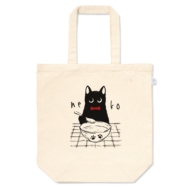 トートバッグ - M - プリント面積中スプーンを持ってスマートにミルクを味わうくろねこくんです笑