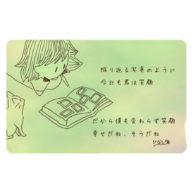 ICカードステッカー - 約85.7x53.9(mm)この商品はpixivFACTORYで作られた商品です。サンプル画像は完成イメージのため、実物と異なる場合があります。 ひなしろの詩シリーズ第二弾「息づく距離」より、第三篇のデザインのICカードステッカーです。 通学、通勤、お出かけの際にも、心安らぐひと時を持ち歩けます。