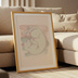 Soft pastel sleeping cat illustration designed for calm, cozy, and aesthetic interiors. This digital artwork features a curled, relaxed cat drawn in a minimal line art style with gentle pastel tones, perfect for creating a peaceful atmosphere in your room.