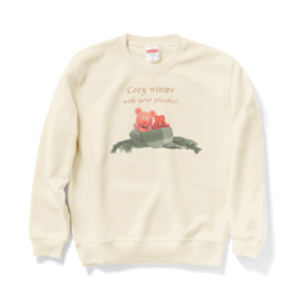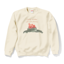 スウェット - XL - ナチュラルやぁ! パッチャだよ〜 このふゆ、みんなたちと あったかくなれるように スウェットをつくったよ〜 パッチャたちの うえにかいてる メッセージは〜 ハッピーなふゆを ぬいぐるみといっしょに! っていみなんだよ〜 いっしょに ぬくぬくすごそうね! - ハァ! イニーだよ! にんげんさんの まふらーは イニーたちには とってもおおきいから おふとんみたいなの! ハァ!テントもつくれちゃうかなー パッチャ、マフラーでテントごっこしよー - - - - - - - - 管理人しげです。 この商品はpixivFACTORYで作られた商品です。発送、仕様、在庫ともに、pixivFACTORYによる公開情報に準じます。 サンプル画像は完成イメージのため、実物と異なる場合があります。 パッチャたちが、 冬に暖かく過ごせるようなグッズを作りたい〜と はりきっていて、楽しそうにしてました。 管理人さんのマフラーを借りたい!と相談されたので どうするのかな?とおもっていたら、 とても暖かいデザインになって、なんだか私もうれしかったです! みなさんも、お家のぬいさんたちと、あったかい冬をお過ごしください〜 だんだん寒くなってくるし、ウィスペンもうそろそろ帰ってくるかな?