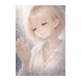 ポスター - B2この商品はpixivFACTORYで作られた商品です。サンプル画像は完成イメージのため、実物と異なる場合があります。 雨粒越しに浮かぶ、やさしい微笑みを描いた作品です。 しっとりとした空気感の中に、 ほんの少しの温もりと希望を感じさせる一瞬を表現しています。 落ち着きと優しさを感じられる、 心に残るポスターです。