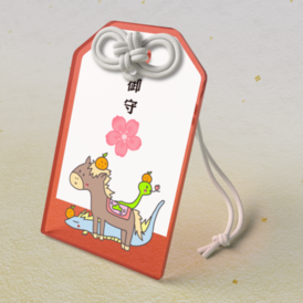 アクリルお守り - 50 × 80mm御守り型のアクリルキーホルダーです。 2026年の干支である午と辰巳が”だいだい”をのせた新年っぽい絵柄です。 年のラッキーカラーである赤も入れた可愛いキーホルダーになりました。 ※この商品はpixivFACTORYで作った商品です。サンプル画像は完成イメージのため、実物と異なる場合があります。受注販売です