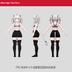-----Contents----- ・UnityPackageデータ(VRC向け) ・.fbxデータ ・テクスチャデータ(PSD有り) Polygon 12216 tris Materials 1 textures 2 衣装モデル適用にはModular Avatarを使用してください Please use the Modular Avatar to apply https://modular-avatar.nadena.dev/ja/ 対応シェーダー lilToon https://lilxyzw.github.io/lilToon/