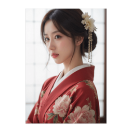ポスター - B2この商品はpixivFACTORYで作られた商品です。サンプル画像は完成イメージのため、実物と異なる場合があります。 深紅の着物に大輪の花をあしらった、 気品とやさしさをあわせ持つ和装ポートレート。 柔らかな光と繊細な表情が、 静かな時間と日本的な美を感じさせます。 和風インテリア、寝室や書斎、 落ち着いた空間のアクセントにおすすめの一枚です。