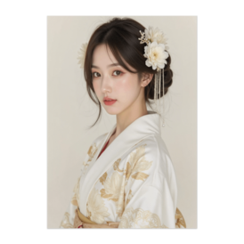 ポスター - B2この商品はpixivFACTORYで作られた商品です。サンプル画像は完成イメージのため、実物と異なる場合があります。 白地に金彩の花模様が美しく映える、 気品あふれる和装ポートレートアート。 やわらかな光と落ち着いた表情が、 静かな時間と日本的な美意識を感じさせます。 和モダンなインテリアや、 上品で落ち着いた空間におすすめの一枚です。