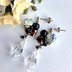実装は夏、その時から作ろうと思っていたデザインなのに、やっと年を越える前に作れました(^^;) 2025年の締めは、色々物議をかもした(当社比)剥落くんです。 内側からほんのり光るような大ぶりのスワロフスキークリスタルビジューに、シラーが美しいシルバーシャインオブシディアン、スカーレットビジューの組み合わせでキャラカラーを揃え、『剥落』のイメージで、あえて透明ながら歪なカットのクリスタルドロップを下げました。 このデザインは、この一品限りです。 ピアス、イヤリング両対応ですので、お好みの金具でご購入下さい。 ●アレルギー対応商品について 当店ではピアス、イヤリング、チェーン、アジャスター等にサージカルステンレス316を使用時明記しております。 体質には個人差がありますので、必ずしもアレルギーが出ないという保証ではございません。 樹脂ピアスも取り扱っておりますので、そちらもご検討下さい。 ●色褪せ・錆について ステンレス以外の、錆びやすい材質のパーツとの組み合わせの場合、そのパーツの錆びがステンレス表面に付着し「もらい錆」により錆びてしまうケースがございます。 その際は錆びをすぐに除去するようにしてください。 また、水に濡らしたりアルコール・汗等が付着しないようご注意下さい。 ●レジン作品について レジン作品は非常に繊細な為、強い衝撃を与えたり、高温・直射日光に長時間さらさないようご留意下さい。 また、水濡れやアルコール、汗などは劣化の原因となる為、触れないようにご注意下さい。 ●天然石について 当店では天然石を使用している場合、その種類を明記しております。天然石の一部は長時間の直射日光や水分に弱いものが多いです。アクセサリー用に加工されているものを仕入れておりますが、水に濡らしたり長時間直射日光にさらさないよう、ご注意下さい。