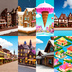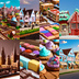 《素材24点》『お菓子でおかしな街』_ファンタジー系背景画像素材